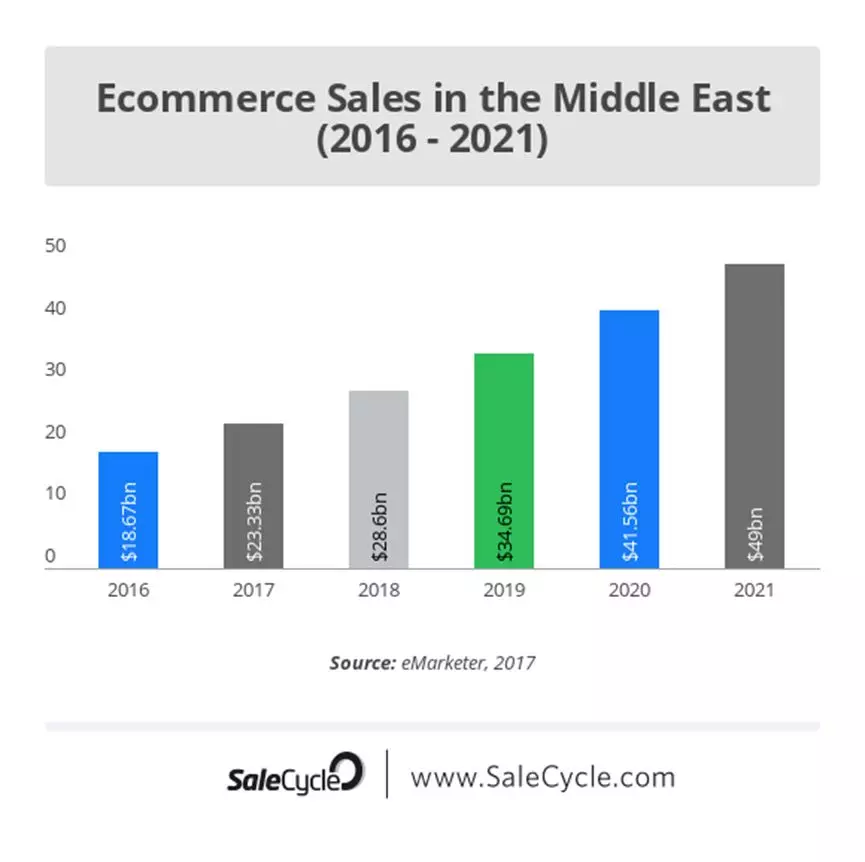 另外,根据eMarketer的预测,到2021年,中东电子商务市场价值将达到490亿美元。