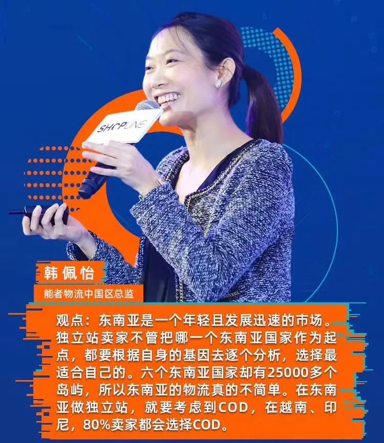 8月7日,在SHOPLINE独立站生态峰会上,NinjaVan 能者物流中国负责人韩佩怡女士进行了东南亚跨境主题发言,剖析了东南亚的整体经济情况,电商市场规模,人口构成与消费趋势,同时,就进驻渠道与平台的选择,跨境物流与当地派送的特点,以及国家间各不相同的支付习惯等进行了深入的讲解。 东南亚地区,特别是新加坡、马来西亚、菲律宾、印尼、泰国、越南,它们构成了一个区域整体,却又保留着各自的经济与人文特色。对于中国跨境企业出海,无论选择从哪一个或多个国家开始,不论选择平台进驻,独立站开发,或是其他线上销售渠道,都不可避免要解决跨境物流与派送,甚至是货到收款(COD)的现实问题。 NinjaVan拥有东南亚六国最全面的派送覆盖范围,和最庞大的自营派送团队,以及最完善专业的代收货款服务,让我们十足的底气,助力中国企业出海东南亚。此外,NinjaVan也是各大独立站、电商平台在东南亚地区最稳定的物流派送合作伙伴,能够为企业提供专业的建议,选择最适合的出海目的地,并实现平台资源匹配。 2020年5月,NinjaVan完成了其2.79亿美元的D轮融资,强大的资金实力增强了Ninja Van在这全球不确定的情况下为卖家和客户提供服务的决心。融资在艰难的疫情期间仍获得了圆满成功,证明了业界对NinjaVan业务发展的信心,更彰显了投资者东南亚市场,对跨境物流乃至整个区域经济未来的憧憬。