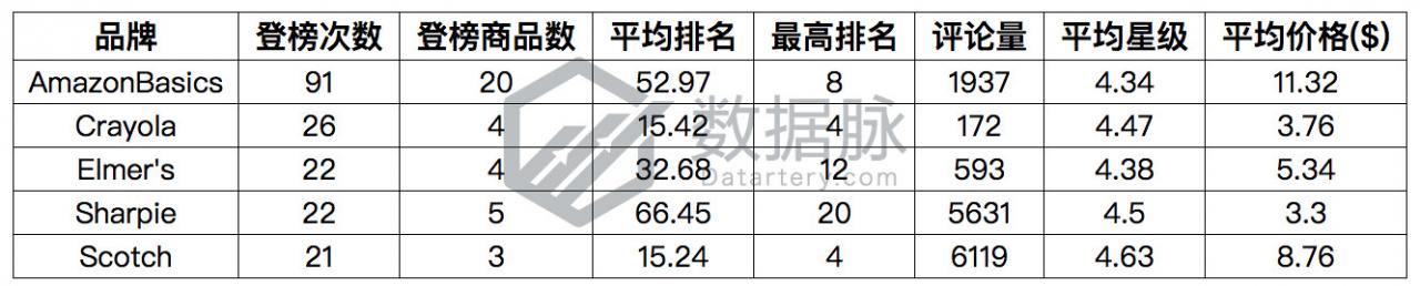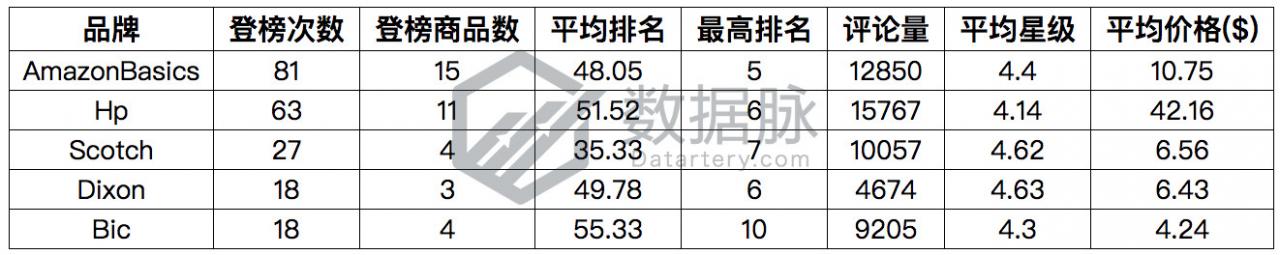 品牌Sotch的运输包装胶带产品、亚马逊自营品牌AmazonBasics的铅笔套装均以平均排名9.14位列商品综合排名第四位。