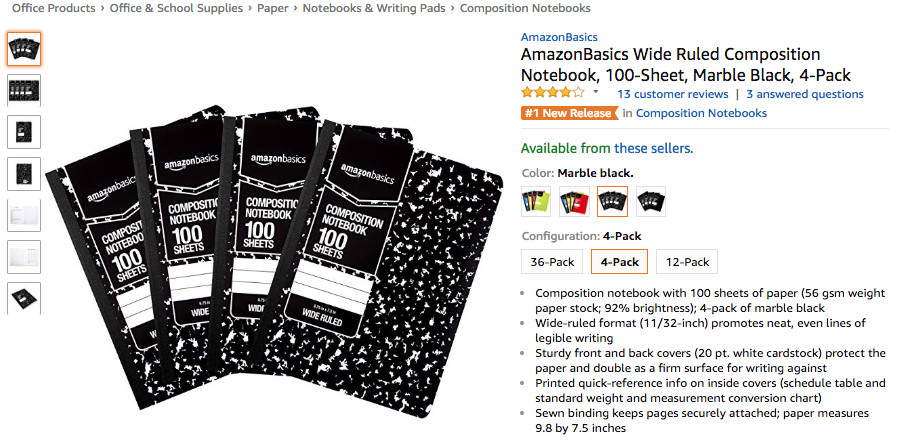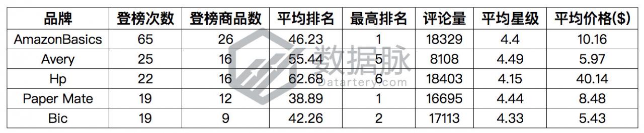 亚马逊自营品牌AmazonBasics的大理石黑笔记本稳定在榜单前十,以平均排名11.0位居综合排名第四位;