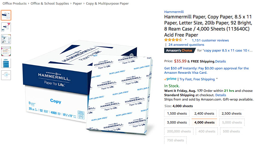 品牌Hammermill的复印纸套装中期有过不俗表现,以平均排名9.86位列综合排名第五。