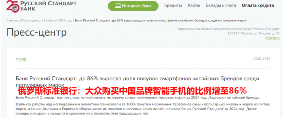 俄罗斯标准银行发布的一项关于2024年俄罗斯最受欢迎手机品牌的报告显示,在热门手机制造国里(中韩和欧美),中国手机品牌占比遥遥领先,达到86%,相比2023年和2022年,分别增长了13%和36%。