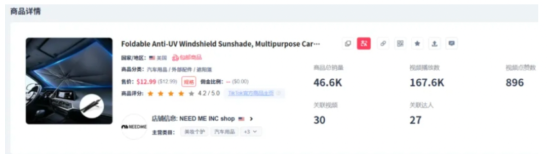 另外,TikTok 平台强大的传播能力也为这款遮阳板的爆火起到了推波助澜的作用。这是因为TikTok有着独特的短视频形式和精准的算法推荐,能够迅速将优质的产品内容推送给大量潜在消费者,从而使得这款遮阳板的销量在短时间内迅速攀升。