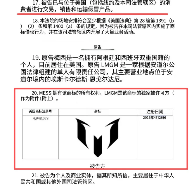 这意味着,任何在美国境内销售带有“Messi”标识或相关形象的商品,均需获得正式授权;而涉案卖家持续向美国市场发货,交易行为发生在美国境内,完全符合美国法院的司法管辖条件。