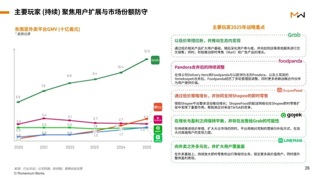 而DeliveryHero则在用韩国业务的利润来补贴其他亏钱的业务。比如说在东南亚,旗下的foodpanda市场份额已经从2021年的22%缩水到了2025年的11.5%。而且在2025年还被Shopee旗下的ShopeeFood超过了: