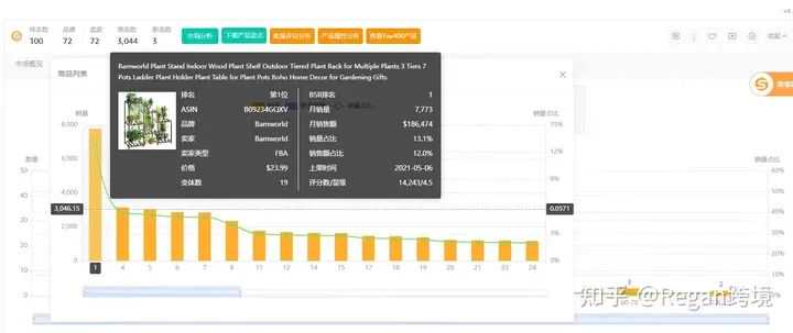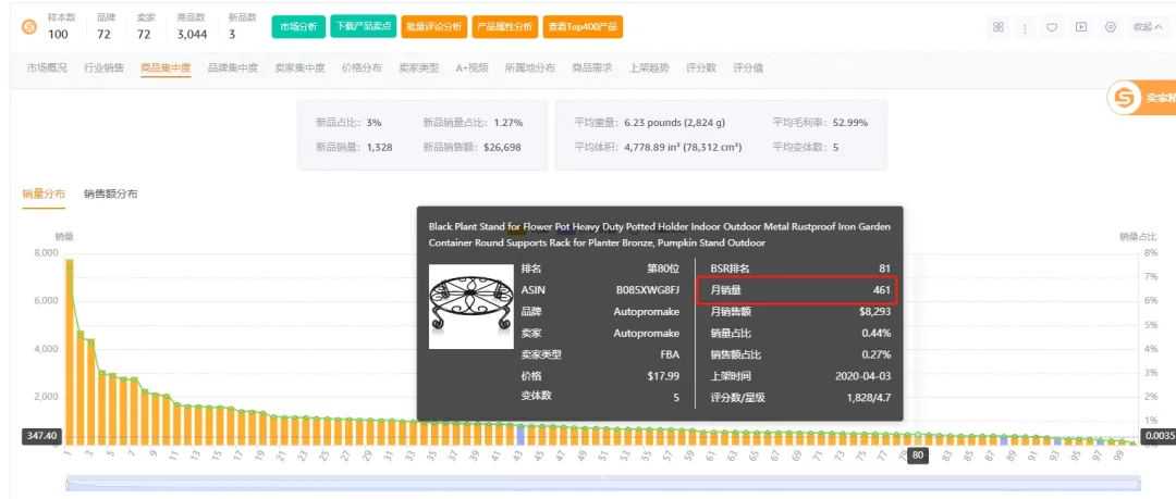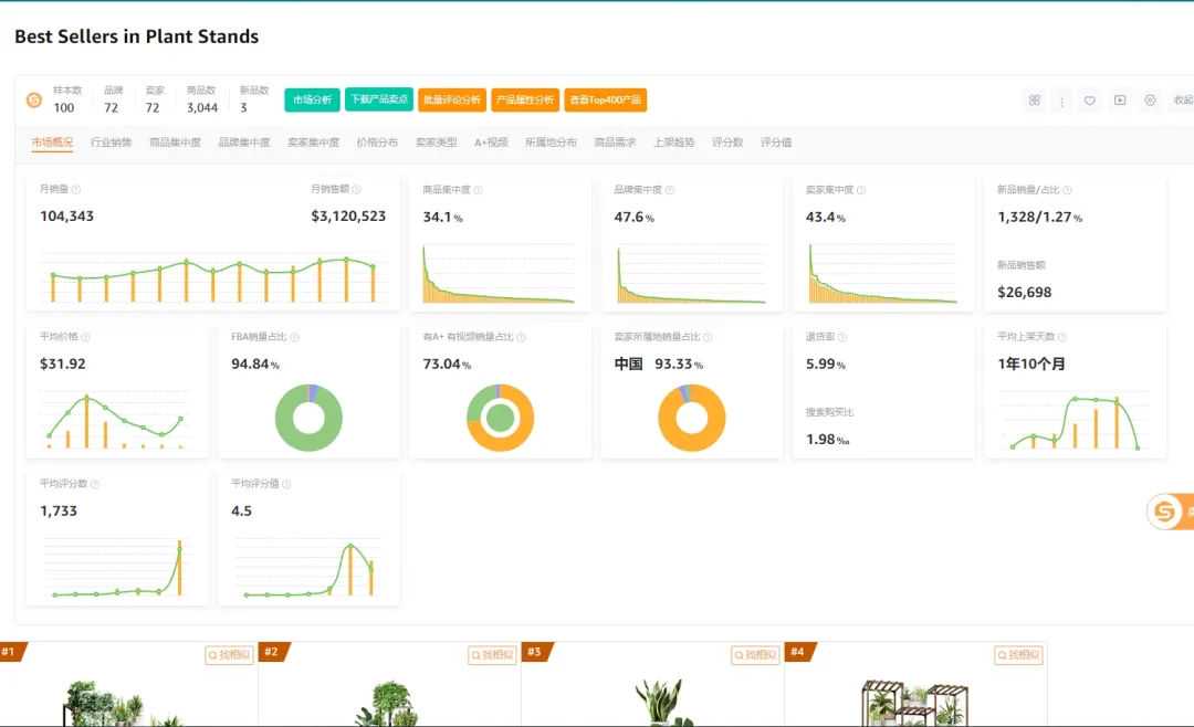 我以一款产品Plant stand为例,带大家分析一下市场:(以卖家精灵市场分析插件板块为例,路径:下载好插件后直接跳转BSR榜单页面即可展示)