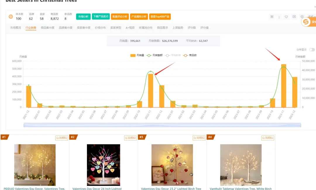 另外一点就是我们也可以借助工具分析季节性产品市场情况怎样,找到旺季的爆发点进行提前备货准备: