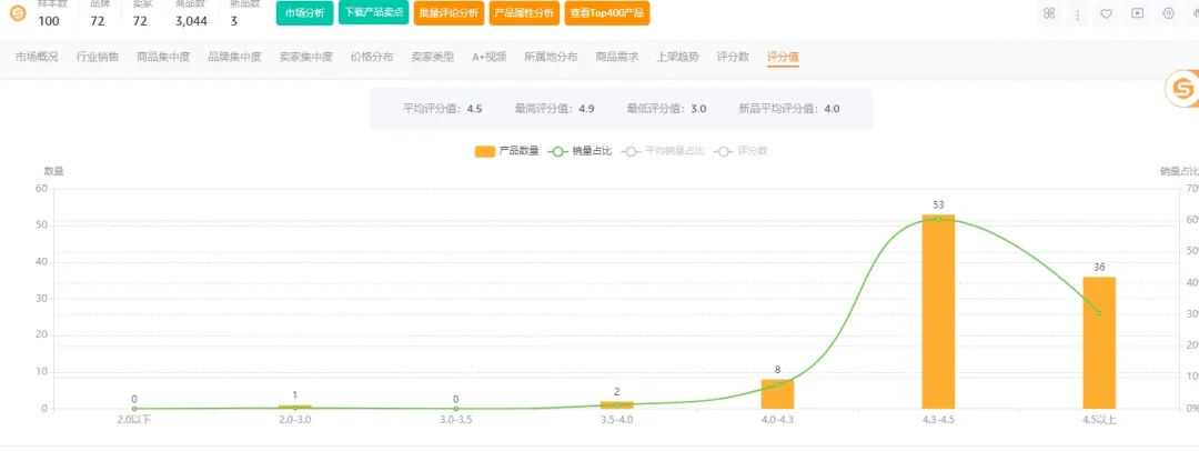 平均星级的话可以反映出来类目里面的产品是否有痛点。