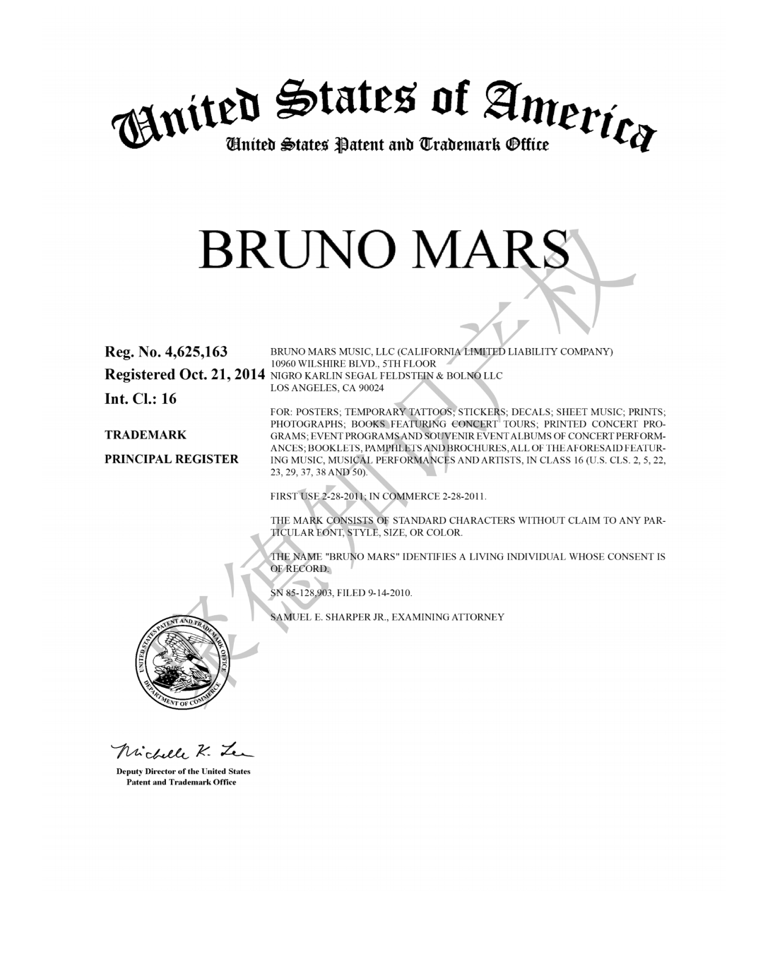 原告是Bruno Mars品牌美国独家代理商。Bruno Mars作为当代最具影响力的流行音乐人,其作品融合流行、R&B、放克等多元风格,全球唱片销量超千万。品牌现已拓展至服装、配饰等品类,通过授权店铺及电商平台覆盖全美市场。