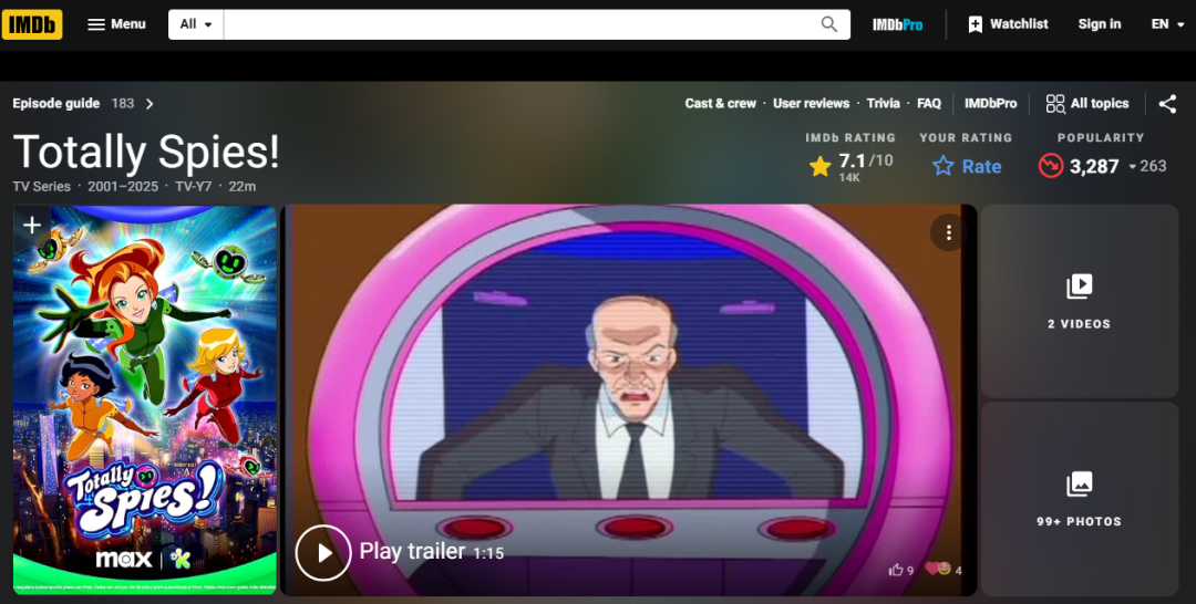 “TOTALLY SPIES!” 是一部受日本动漫影响的间谍题材动画系列片,讲述了来自加利福尼亚州比弗利山庄的三名少女作为世界人类保护组织(WOOHP)的卧底特工的故事,在全球拥有一定的知名度和影响力。