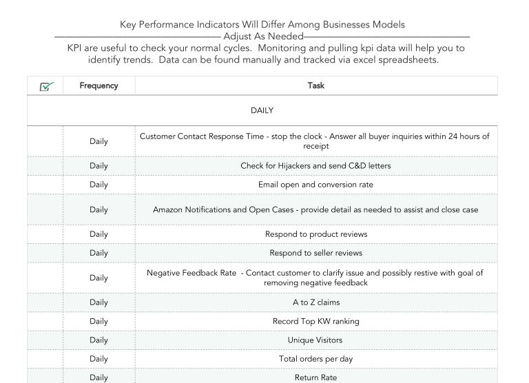 此表仅供参考,这里再附上一份某国外网站的的亚马逊运营日常的Check list ,同志们可以比对着看一下,看是否给自己带来新的灵感和启发