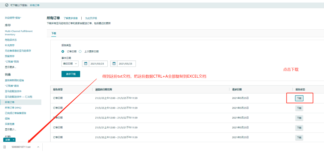打开亚马逊后台-【数据报告】-【库存和销售报告】,请看下面的截图