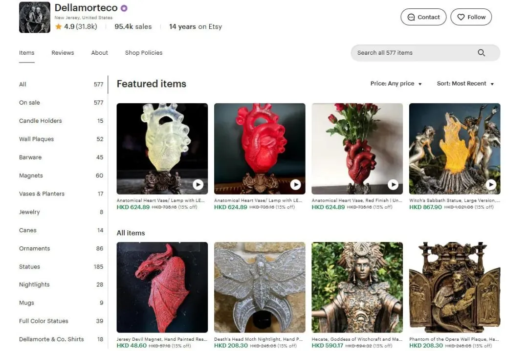 原告MICHAEL LOCASCIO是一位来自美国的艺术家和雕塑家,也是Dellamorte LLC的创始人,致力于制作和销售能唤起感官、为日常生活增添奇幻色彩的神秘艺术作品。他曾跟一位青铜纪念碑制作师学习古典雕塑,随后开始为动作人偶和收藏品公司制作原型。2011年开始把个人作品放到了Etsy上,专注于销售其原创艺术作品。