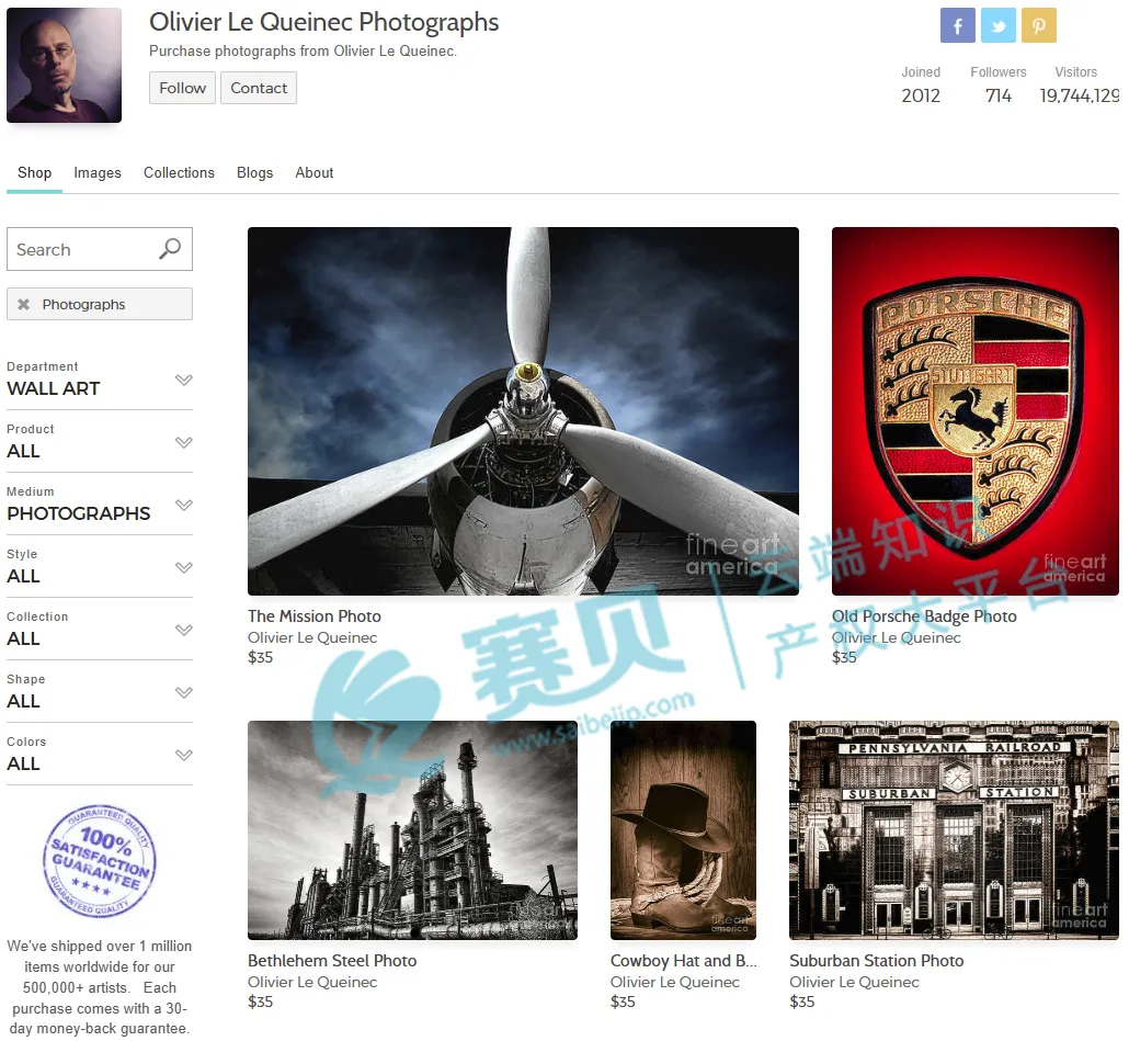 原告为 OLIVIER LE QUEINEC(奥利维耶・勒凯内克),是一位拥有多年创作经验的专业摄影师。出生于法国巴黎,其作品在全球范围内被广泛出版于网站、书籍、杂志等各类出版物,同时作为高端装饰画、海报等产品的核心素材流通,版权保护意识极强且维权经验丰富。