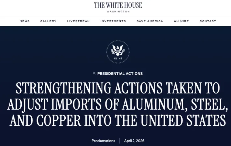 美东时间4月2日,美国总统特朗普签署公告,对美国钢铁、铝和铜的进口关税进行了重要调整,主要是对征收方式和衍生品的税率进行了调整。