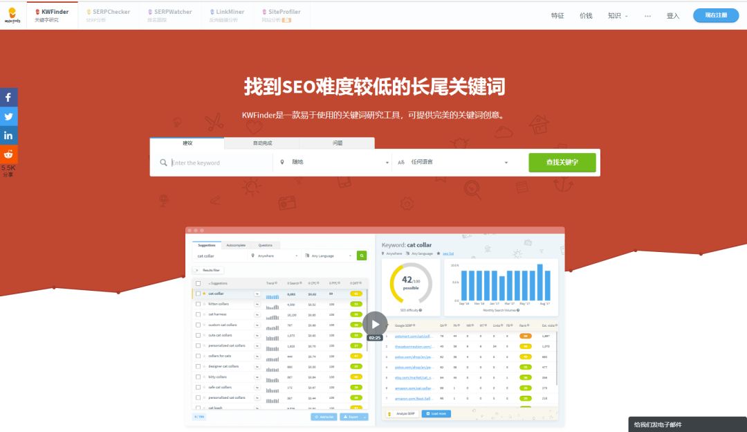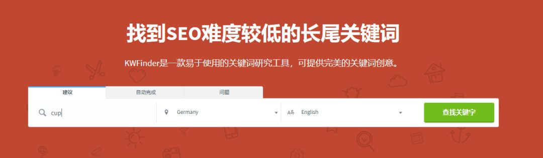 kwfinder是最新添加的一个关键词工具,让你跟踪任何领域的关键词排名。