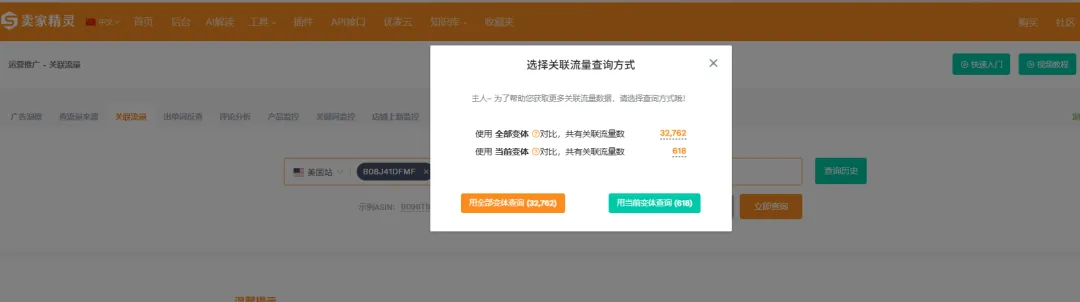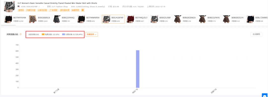 通过卖家精灵这个工具的关联流量功能,只需要输入一个 ASIN,就可以看到以下信息: