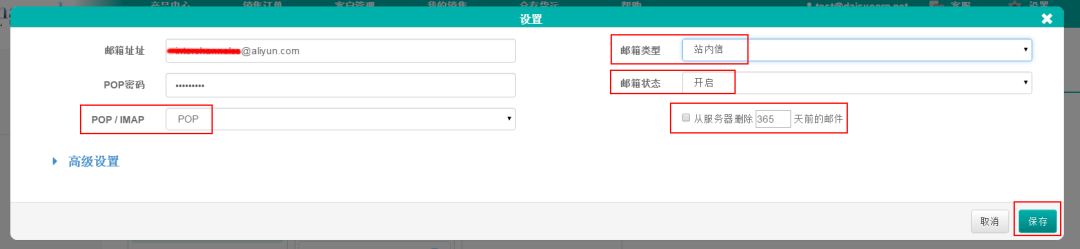 使用此设置,请确保你的邮箱的POP或IMAP为开启状态。然后在右上角选择“站内信”,邮箱状态选择开启。