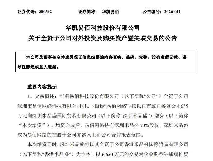大手笔,华凯易佰6650万收购了香港公司店铺 !!!