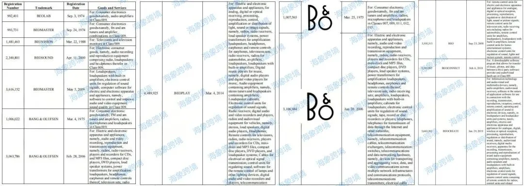 原告公司成立于1925年,是一家由工程师 Peter Bang 和 Svend Olufsen 创立的无线电制造商。原告致力于向高端消费电子市场推出音频系统、电视、电话、扬声器、条形音箱、耳机以及配件。如今 B&O 已成为豪华音视频电子产品的行业领导者,其标志性的“Beo”系列产品——包括 Beolit 便携式无线扬声器、Beogram 转盘、Beovision 电视和 Beosound 音响系统,均体现了他们设计、工艺和声音的完美融合。案件涉及商标众多,未经允许不得使用!