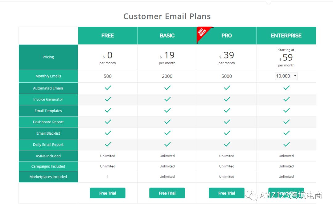 AMZFinder是管理评论工具,对亚马逊FBA卖家来说是一个必备工具。它免费为卖家提供电子邮件自动发送服务,所有用户每个月都能免费发送500封邮件。不过用户如果想发送更多邮件,就需要付费了: