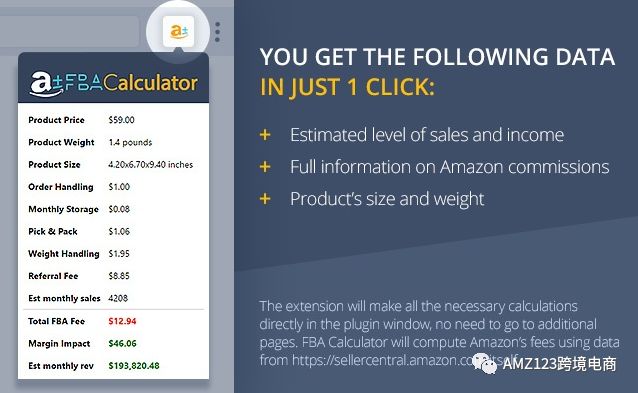 FBA Calculator是一款计算器,可以快速计算出产品的利润。所有站点都可以使用这个工具,能免费在Chrome商店下载。通过计算成本价格、预估销量等,能估算出产品利润。安装以后,打开产品页面就能进行相应的计算。