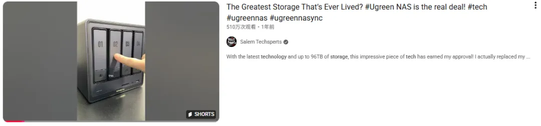 视频结尾,博主明确告知产品将在 Kickstarter 开启众筹,并强调 “开售后48小时内通过简介链接可享六折优惠”,直接引导流量跳转至众筹页面。这条内容契合 YouTube Shorts 的快节奏传播逻辑,最终获得 30 万点赞、510 万播放,为 2024 年 NASync DXP 系列众筹奠定了坚实的流量基础。