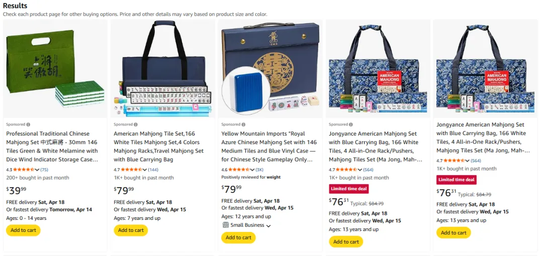 在B2B批发端,美国麻将牌套装(166片)月销量达到1479件,而专业中国麻将套装的批发价仅为14.97美元,零售价却可达上百美元。