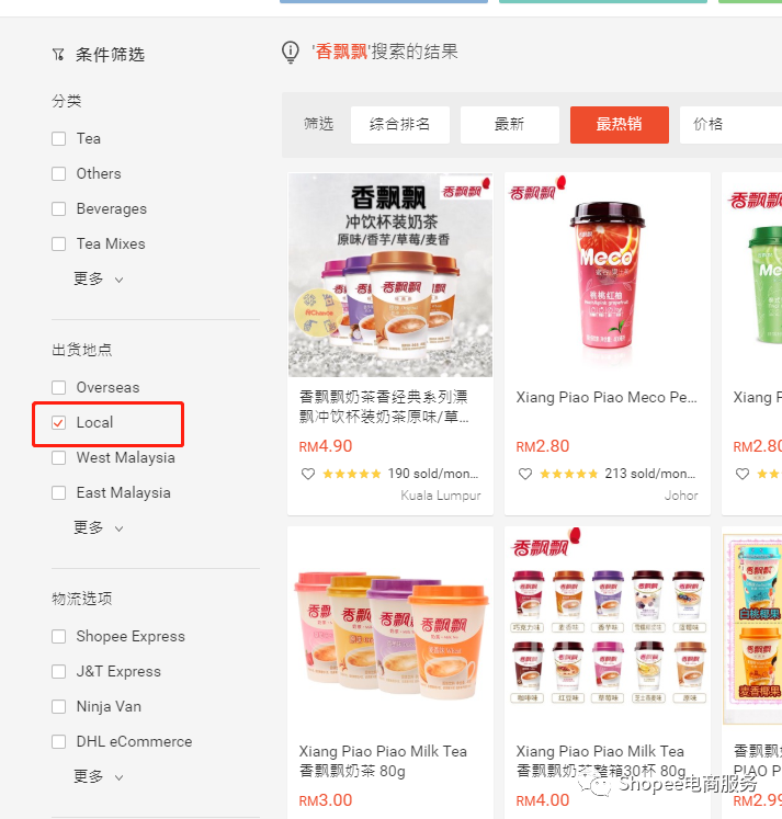 同等条件下,任意搜索一个关键词,Shopee平台会优先展示本土店。这主要得益于平台对本土店的流量支持。而且平台上的买家也更愿意在本土店下单,因为对比跨境店而言,本地卖家选品更符合当地审美,平台的运营成本更低,更能让利买家。