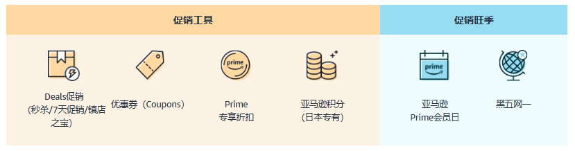亚马逊为卖家提供平日可提报使用的促销工具,以及一年数次的促销旺季机会,帮助卖家进行新品启动,培育流量,并且迅速出单。