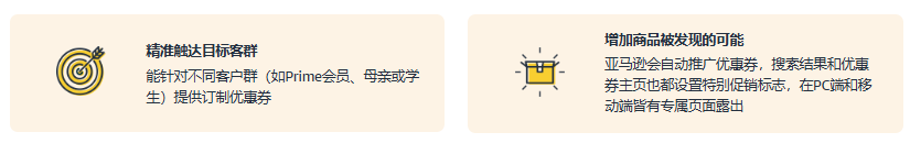 优惠券是面向所有卖家的促销手段,设置门槛相对较低,卖家可以通过优惠券为单个商品或一组商品创建折扣,还可以因此享受由亚马逊提供的自动推广服务,是卖家吸引流量,节约营销成本的优质之选。