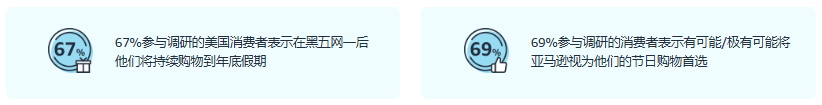 每年11-12月的节假日相对集中,消费者购物的需求上升明显,其中黑色星期五(Black Friday,简称“黑五”)和网络星期一(Cyber Monday,简称“网一”)已成为全球买家的疯狂购物节。通常每年11月的最后一个星期五就是“黑五”,“黑五”结束后的第一个周一便是“网一”,在此期间,亚马逊购物网站也会举办全站点的大促活动。全品类商品的流量与销量都会在此期间得到大幅提升。