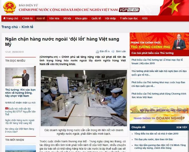 越南海关6月9日曾发表的声明称,越南海关已发现数十份伪造的产品原产地证书,企业试图通过非法转运来避开美国对农产品、纺织品和钢材等加征的关税。当时越南海关总署正在大力指导海关部门,加强货物原产地证书的检验和认证,避免外国商品印着“Made in Vietnam”的标签转运到美国市场,主要针对中国转运出口产品。越南政府发现的欺诈案例包括中国产品的包装被改为“越南制造”,伪造原产地证书,再出口到美国。