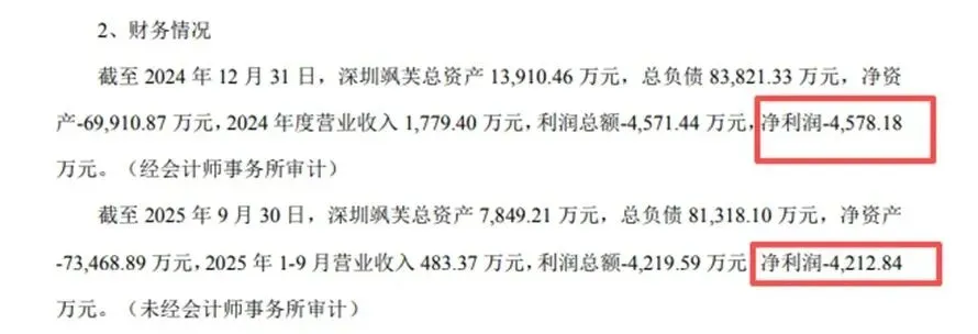 据公开信息,截至2025年9月30日,公司总资产仅7849.21万元,总负债却高达8.13亿元,净资产为-7.35亿元,属于严重资不抵债。