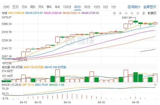 4月14日美股收盘,亚马逊上涨5.28%,报2283.32美元/股,总市值超越1.1万亿美元;4月16日美股收盘,亚马逊上涨4.36%,报2408.19美元/股,总市值破1.20万亿美元。