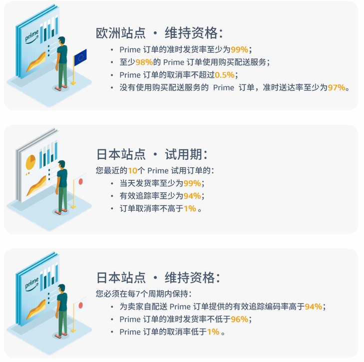 您是不是已经心动了呢?那么,什么样的卖家才可以加入卖家自配送 Prime 计划?接下来就为您详细解读 Prime 计划对卖家的要求。