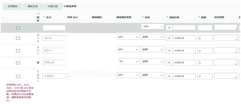 违规,颜色属性值中没有对应的有效值,不能创建变体。