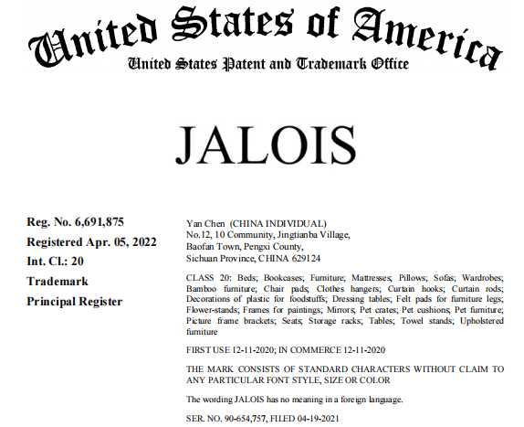 原告Yan Chen是中国人。JALOIS品牌是原告于2020年前后开始以该品牌名义进行创意作品创作。原告长期致力于将实用功能与美学设计相结合,在衣架、家具及宠物家具等领域专注创意表达与品质提升。通过原创设计将功能性与艺术性完美融合,为用户提供兼具实用性与视觉美感的高品质产品。