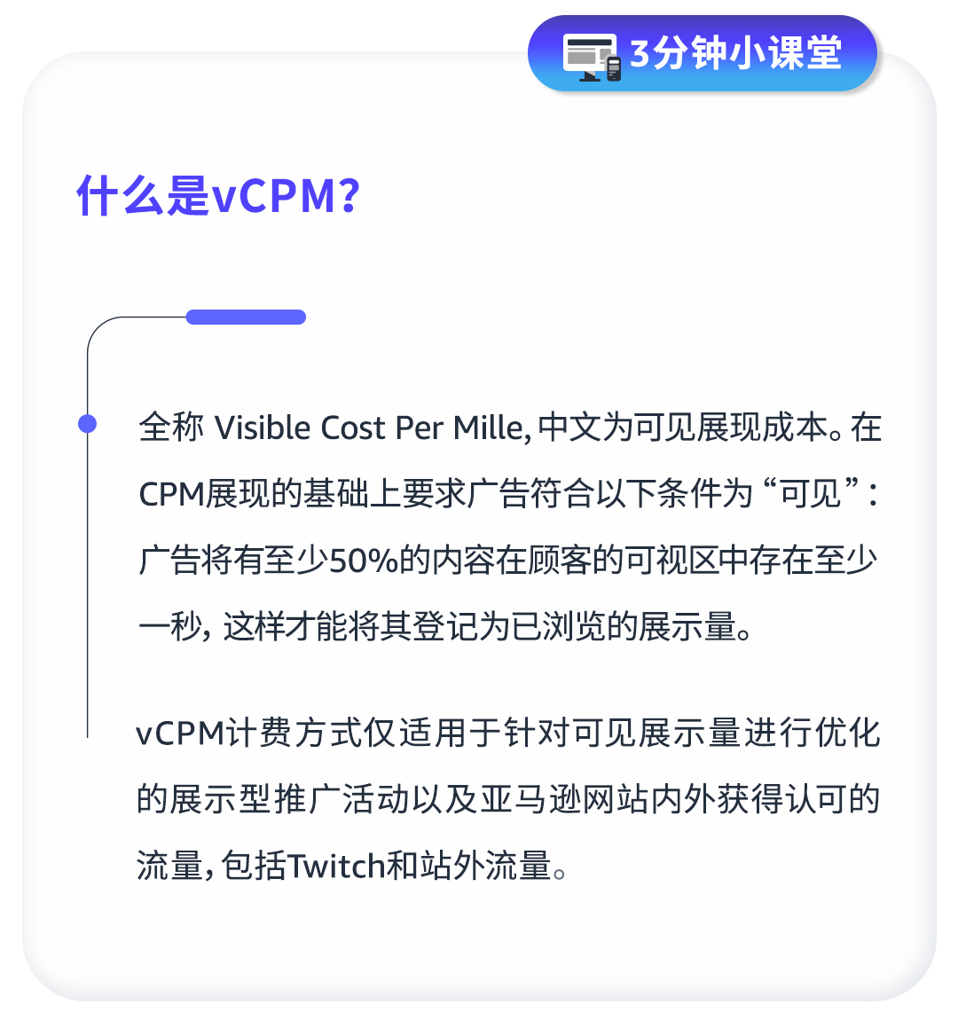 如果您此刻的运营目标是有更广泛的触达,拥有更多的可见展示量,从而提升商品的认知度,可以选择“针对可见展示量进行优化”和“vCPM”计费方式,系统将帮助您实现这一目标,但其流量可能会拥有较低的点击率和转化率,因此从出单的维度来看,似乎进入了“广告费更高”的误区,但其本质是拥有了更广泛的品牌和商品的知名度。