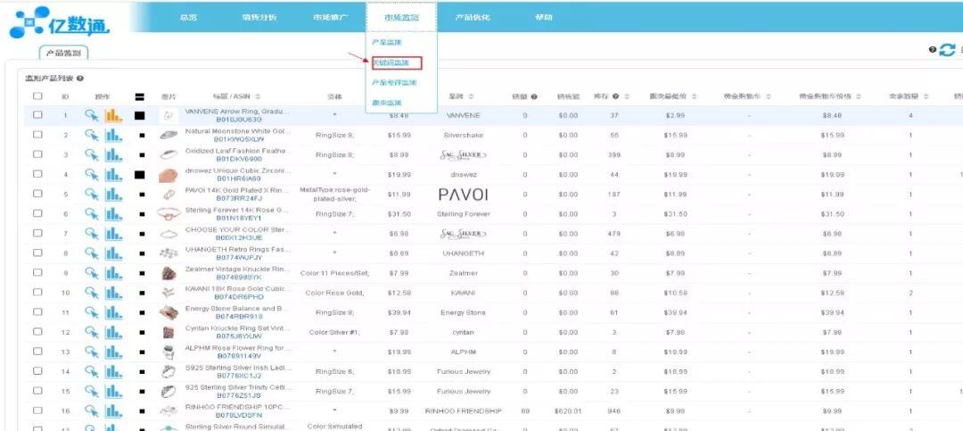 进入亿数通系统,添加“rings(戒指)”这个关键词进行监测。