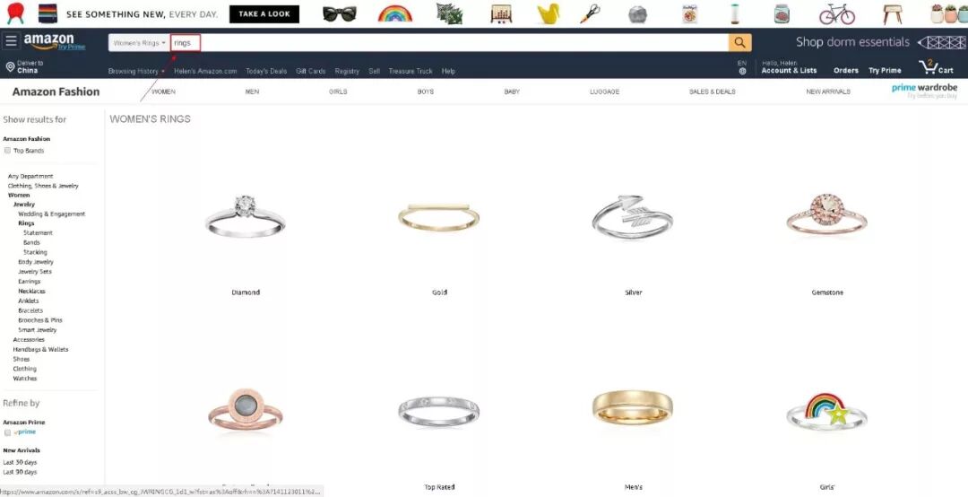 先选出准备上架的大品类,例如“rings(戒指)”这一大类。