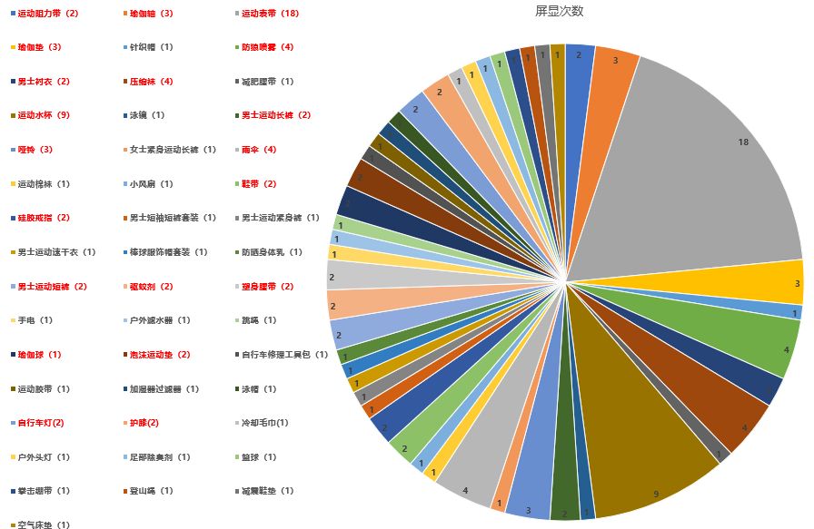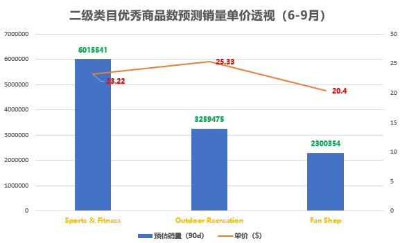 存在即合理,选品方法和产品在我看来并无对错之分,只有适合与不适合。 朋友们且看且思,有则用无则弃。欢迎各抒己见,万家争鸣。这是一场学习,也是一次历练,更是一次修行。对我,对朋友们,都是。今天的文章会有些许冗长,所以到此为止。 Sports & Outdoors是个人比较喜欢的类目。典型的季节性类目,对应春夏秋冬四季,往往有很多市场表现较好的产品交替出现。因为季节性表现涵盖全年,所以我更愿意视他为一个全年性类目。下分Fan Shop、Outdoor Recreation、Sports & Fitness三个二级子类目。 其中Fan Shop下属产品可作为其余两个类目产品的补充,与其他一级类目具有关联性的产品常设其中,也是卖家购买倾向的明确表现。因为人如其名—FAN,此类目产品可考虑组合销售。 其中Outdoor Recreation下分Outdoor Clothing、Camping & Hiking、Climbing、Cycling、Skates, Skateboards & Scooters、Water Sports、Winter Sports、Accessories 8个二级类目。 Sports & Fitness下分Boating & Sailing、Clothing、Exercise & Fitness、Golf、Hunting & Fishing、Leisure Sports & Game Room、Airsoft & Paintball、Running、Swimming、Team Sports、Tennis & Racquet Sports、Yoga、Other Sports、Accessories、Sports Medicine 15个二级类目。 其中不乏产品类目分布混乱情况,有类似运用表带这样的霸屏产品,也有压缩袜、运动阻力带等长居大类目前三销量的产品类型,从这里开始,跟随我的脚步来一探究竟吧。 01 总 体 概 述 2018年7月-9月,Sports & Outdoors类目优秀商品数预估销量,其中类目FBA占比率约为91%,如下图示: 优秀商品数:计算周期内登顶Best SellersTOP100单品预估销量(登顶即收录,并保持记录) 类目周均销量稳定,即表现为类目波动性小,在售时间长单品销量稳定,新品展现难度稍大。类目夏季产品较多,但9月作为夏季末期,类目总体销量占比与夏季当季(7-8月)无明显下滑。 同时类目平均单价较为稳定,会员日期间有少许波动。客单价约为21$,处于较低水平,客观反映该类目产品低客单价分布较多,且在销量上占有较大比重(类目平均单价的计算一般基于对于在售所有产品的售价统计,因纳入统计产品基数庞大,非极大值或极小值能够影响,且市场容量或需求较大的产品,在售单品一般分布较多,此处可理解为市场需求和竞争性呈正比的表现)。 故:老铁们在选择该类目相关产品的时候,可把个人对于单价的限定适当调整。如果老铁对于30$以上的单品保持较大兴趣,该类目的产品你已经淘汰了大半。如下图所示: 对于二级类目的划分,Sports & Outdoors区分较为简单。简单分为:Fan Shop、Outdoor Recreation、Sports & Fitness 3个二级类目,即表现为三级类目多样化。产品的具体方向性也是在三级类目开始出现具体划分,如下图示: 从上图可知:运动健身类市场需求大于户外类。这其中除了与产品需求有关外,同时也含有产品丰富性的因素。 从三级类目划分个数可以看到:Sports & Fitness>Outdoor Recreation。此外也不乏季节性因素,户外运动与运动健身有活动习性交叉,但更倾向于室外,受季候制约较强。 在Sports & Outdoors一级类目TOP100榜单中:100个单品中呈现46种产品(如下图示)。
