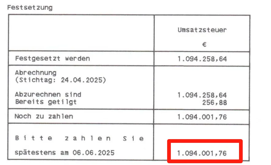 “2024年欠税1094001.76欧元,限6月6日前缴纳,否则加收滞纳金!”看到这封来自税局的信件,客户直接慌了神。更糟的是,店铺因欠税被封后,还被额外核定了2万欧元的滞纳金。