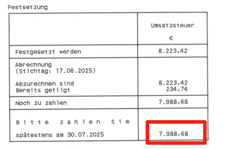最终税局认可了修改后的申报,免除了这笔近8千欧元的欠税。