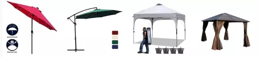 消费者关注点:健康环保材质、防晒尺寸、遮光率、防紫外线率、适用环境、场所及天气、不易褪色、持久耐用、骨架坚固防腐抗菌抗氧化、伞布防水、易于清理、通风设计、便携性良好、适合高度、安装简便快捷、包装清单