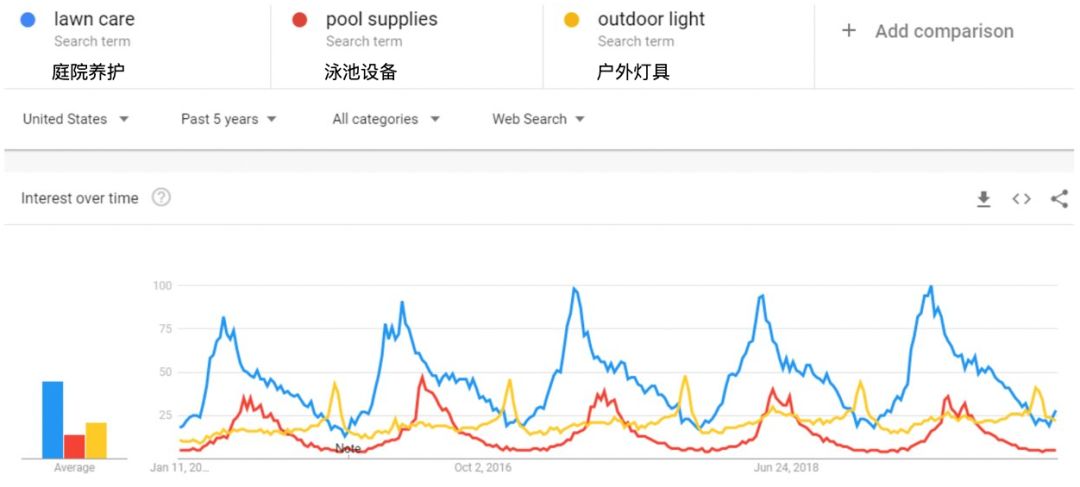 从Google Trends关键词搜索趋势不难看出,庭院品类具有非常明显的季节性特点[7]。