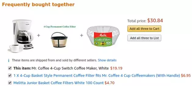 你在亚马逊“Frequently bought together(经常一起购买)”标题下面看到的所有东西都是对产品详情页面显示的产品的补充。