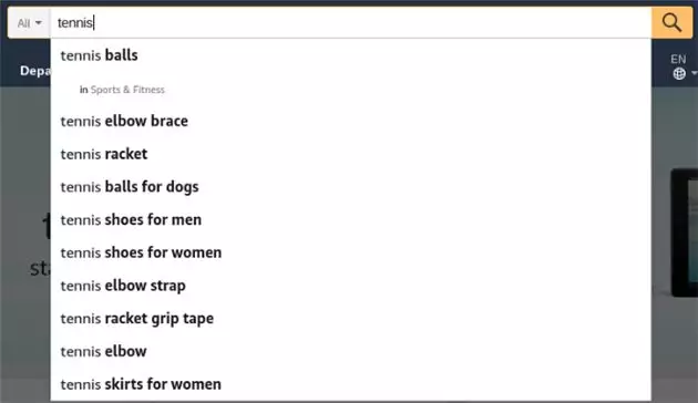 当你开始输入所要搜索查询的内容时,亚马逊会提供其他消费者经常使用的关键词的建议。