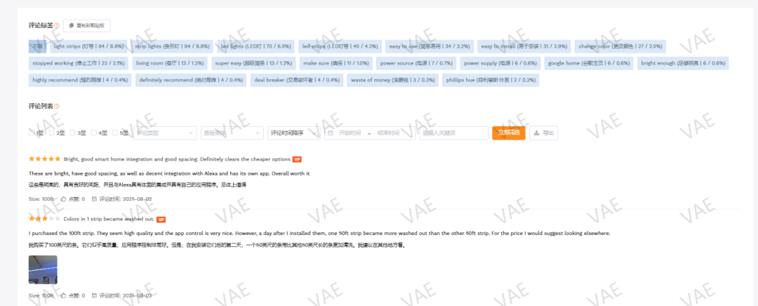 评论是反应买家的比较真实的一个语言。可能有朋友会有疑问,有些评论是刷来的,是否要排除删除一些评论?这里我认为一般是不用的,因为即使是找人测评的,一般也是基于用户对于产品的理解,或者测试的体验。可能他们会对于产品评价会更加宽松,但是评价内容一样能反映他们的需求,而他们都是当地的消费者,使用者。