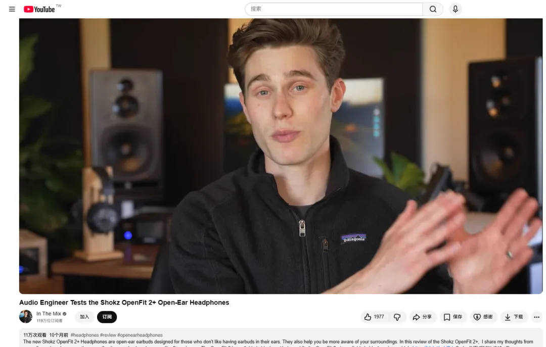 视频以“15年来用过最令人印象深刻的运动耳机”开篇,测评覆盖跑步、骑行、通勤、居家等全场景,明确传递“开放聆听+专业音质”的核心价值,成为英美音频爱好者、运动爱好者的核心信任资产,直接拉动高客单转化,也为品牌建立了坚实的技术权威。